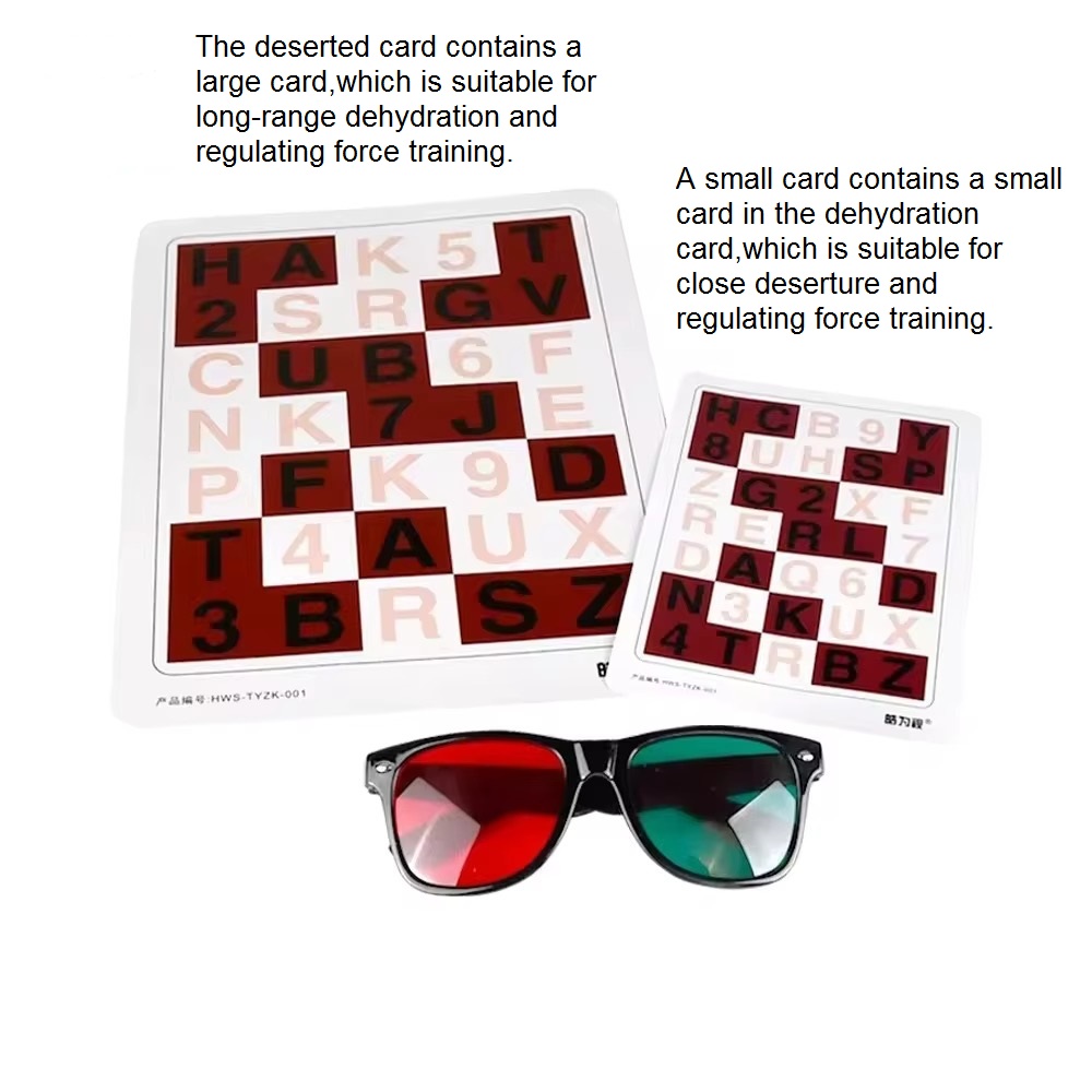 Step 1-The trainer needs wear red and green glasses(left green and right red),holding a small card at 40cm from the eyes. Put the big card in the distance(the position of 3 meters from the eyes).