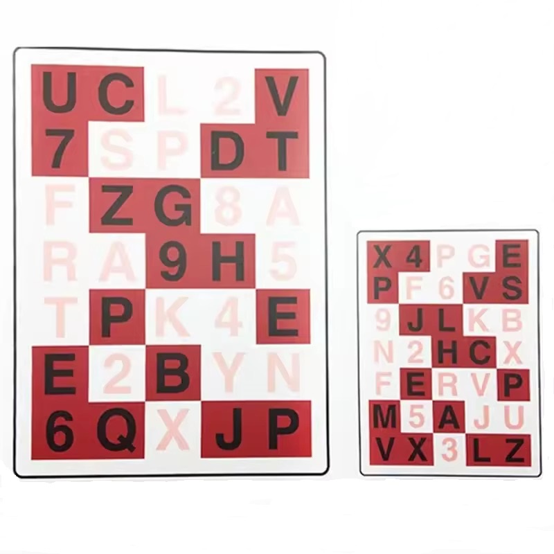 Step 2-At this time,you can see the pink letters of the white bottom plate(green tablet),and the right eye(red film) can see the black letters of the red bottom plate.Then use the left eye when reading the letter of the white bottom plate.Use the right eyes.