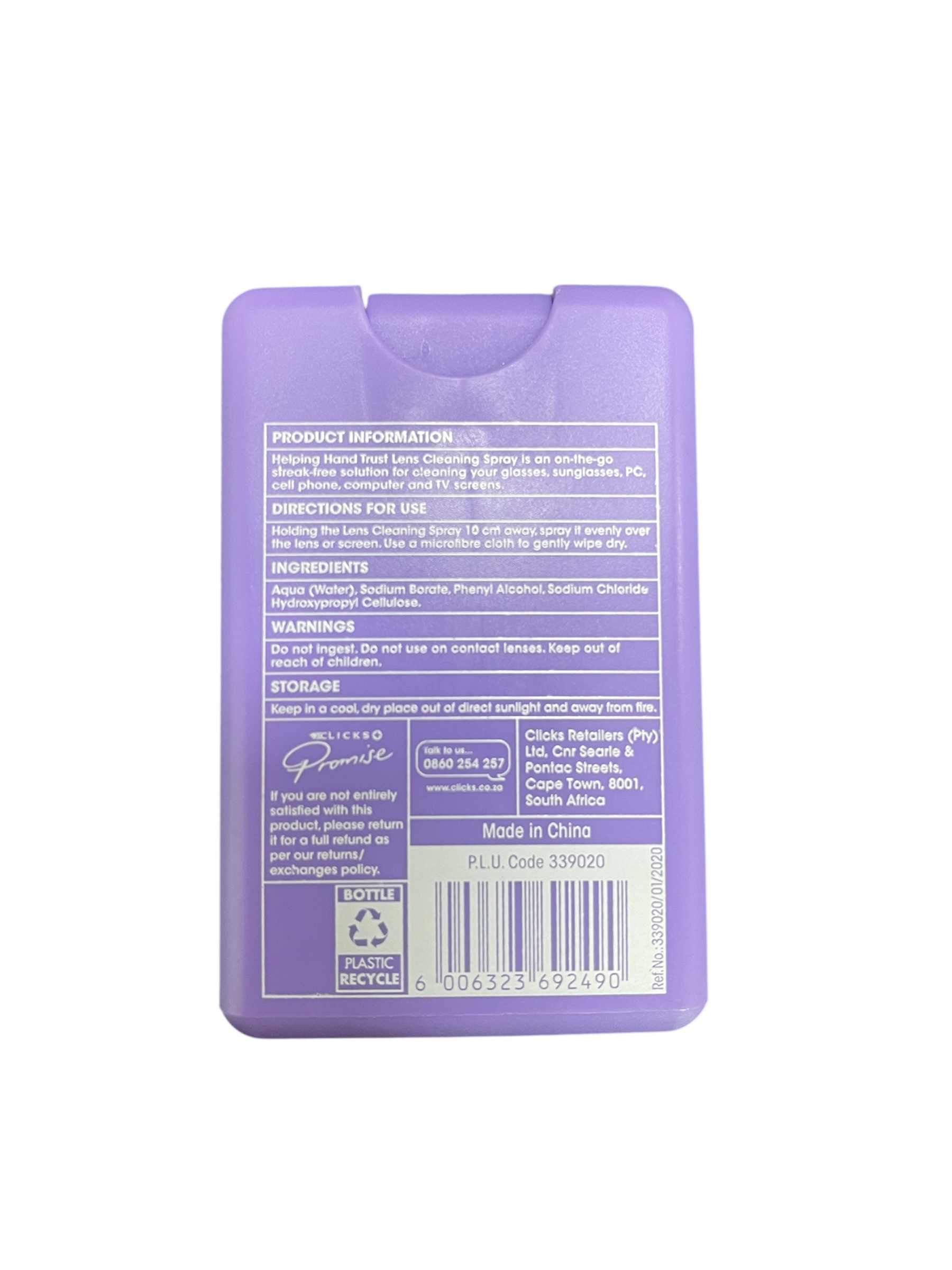 Lens cleaning spray