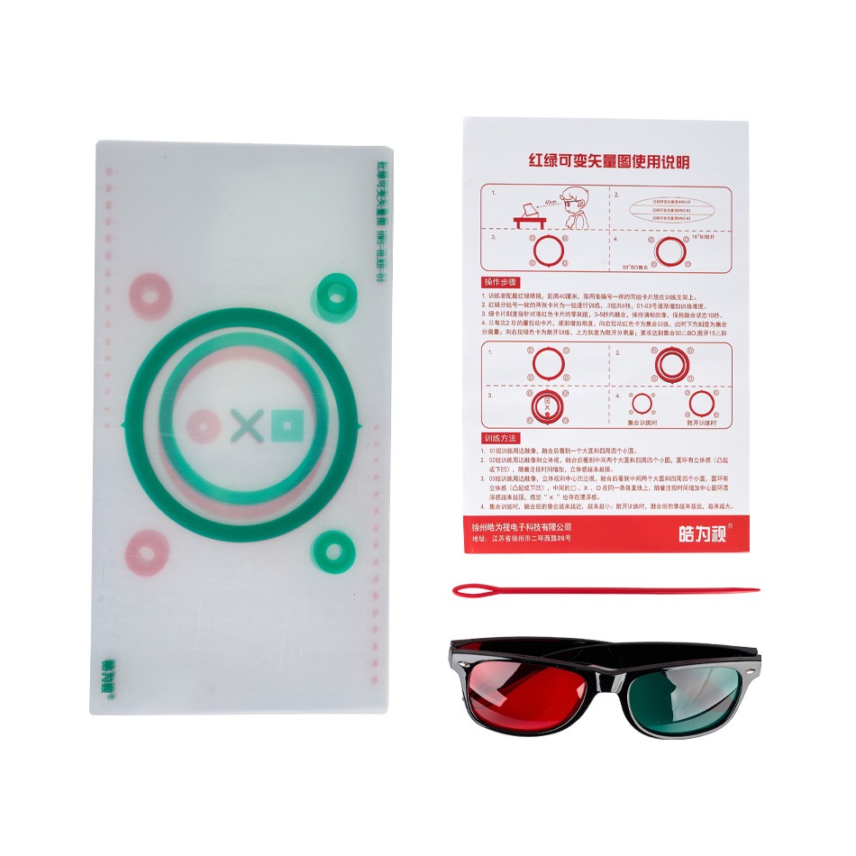 Step1-Trainers wear red and green glasses,and those who already wear glasses need to wear corrective glasses first and then wear red and green glasses.Place the vector image on a tilted stand,40cm away from the eyes,require bright light,and then look at the pattern.