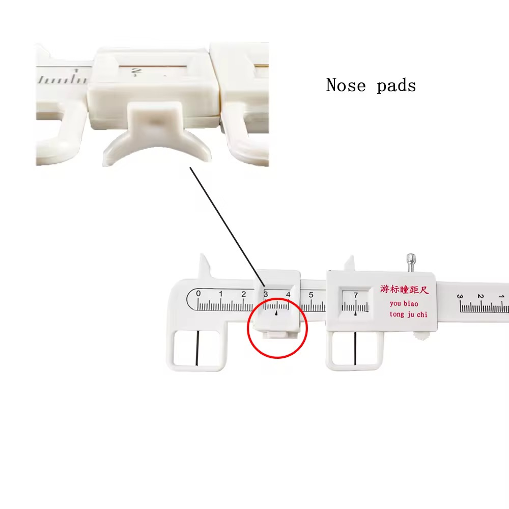 2.Hang the interpupillary height meter on the frame align the center point with the center point of the nose bridge of the frame,wear it to the patient’s eyes and keep it stable.